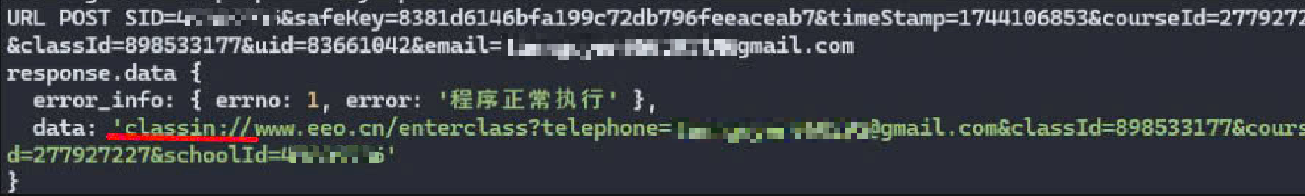 - Sử dụng giao diện trung gian: https://www.eeo.cn/client/invoke/index.html yêu cầu người dùng mở bằng trình duyệt hoặc sử dụng webview tích hợp. Nếu muốn trang web tự động gọi ClassIn và vào thẳng lớp học, chỉ cần ghép các tham số cần thiết vào cuối URL như tham số điện thoại (telephone), mã khóa học (courseId), mã lớp (classId) và mã trường (schoolId).